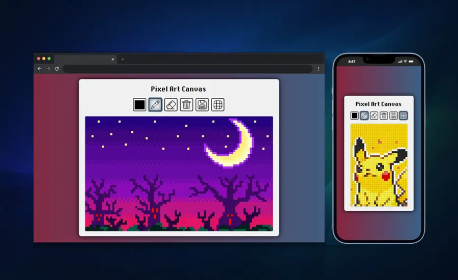 A small canvas that allows you to create simple figures or complex drawings in pixel art style